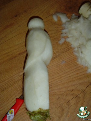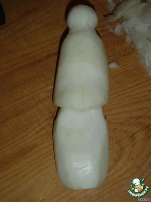 Ножом счищаем редьку, формируя тельце. Подчищаем мякоть под будущими крыльями и хвостом.