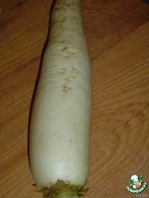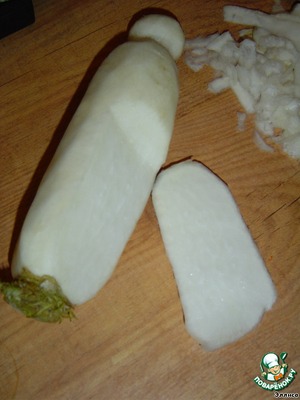 Срезаем часть редьки с одной стороны так, как показано на фото.