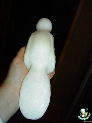 С более тонкого конца редьки удаляем мякоть таким образом, чтобы получился шарик.