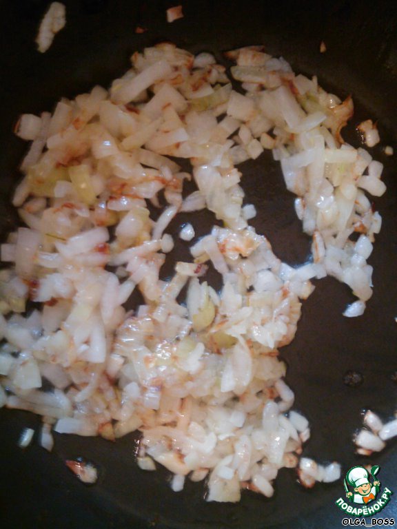 Очищаем и мелко нарезаем луковицу. Обжариваем ее до золотистого цвета.