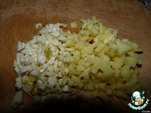 Теперь самый ответственный момент! Добавляем наши специи, чеснок, имбирь. По кухне сразу разливается аромат...