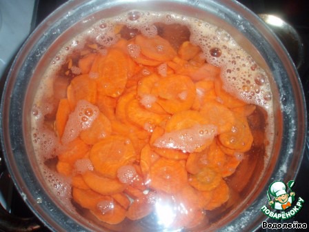 Доводим воду в кастрюле до кипения и выкладывает туда СРАЗУ всю морковку и провариваем ее минуты 2-3. Можно просто пробланшировать ее. Здесь нужно пробовать, чтоб не пропустить момент, который нам нужен. Морковка не должна свариться до мягкости, а должна быть, как бы хрустящей, когда ее кусаешь. И в то же время не сырой.