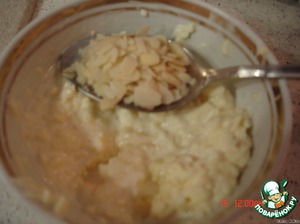 А пока готовим 3-ю "шубку" - трем сыр, смешать с оставшимися сливками и добавляем миндаль.