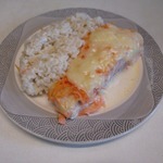 У меня был минтай филе, а вот орехов не было)) и сливок не оказалось, но я для 1-вой шубы использовала молоко с тем же количеством муки)) но прямо чуть помазала поверх сметаной 10%, а в качестве 3-ей шубы тоже сыр+сметана+ чуть молока ))