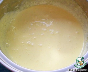 Желтки хорошо растереть со 100 г (0,5 стакана) сахара до состояния крема.