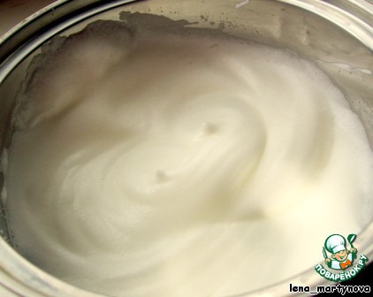 4 яйца разделить на белки и желтки. Белки взбить в густую пену.