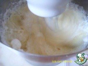Теперь приступим к тесту. Оставшиеся 4 яйца разделить на белки и желтки. Белки взбить в крепкую пену.