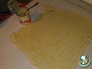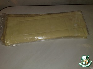 Берем один лист слоеного теста. Хотя, если есть желание, можно и замесить, однако этот рецепт для ленивых сладкоежек.