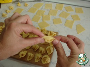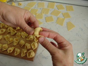 Далее формуем галушки. Описать трудно, но постараюсь. Смысл - соединить внахлест одни противоположные концы квадратиков,