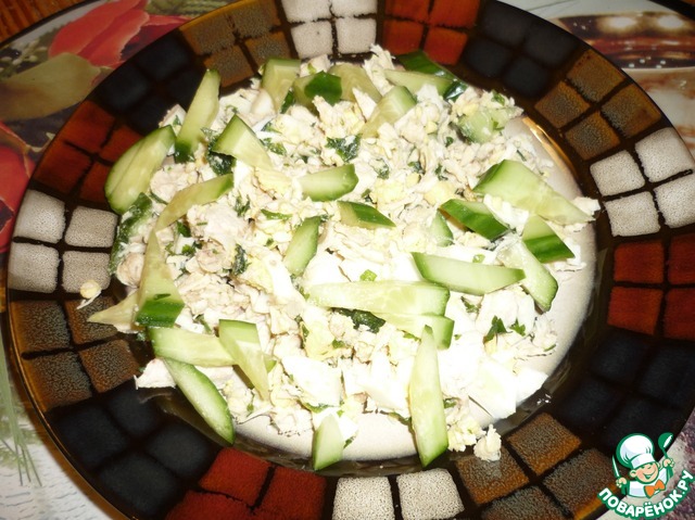 А на следующий день решила повторить, добавив еще зеленого горошка (осталось в холодильнике от другого салата) -тоже очень понравилось.