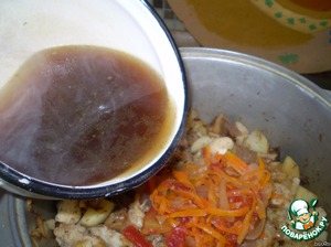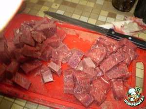 • В жаровню наливаем масло, нагреваем и обжариваем мясо,
