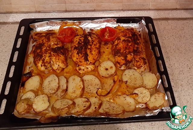 [+5]Запекала на противне вместе с картошкой,перцем сладким и помидором.Овощи пропитались соком от курицы.....вкуснятина.