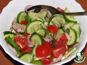 Через 20 минут подаем наши шашлычки с таким вот салатиком
