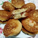2. Сардельки режем кубиками, лук шинкуем, все обжариваем.