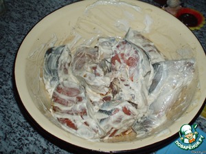 • Горбушу слегка разморозить и порезать на порционные куски. Посыпать солью и дать постоять минут 10-20. Затем добавить майонез, приправу для рыбы, соевый соус или лимон. Все это хорошо перемешать и оставить минут на 30, чтобы рыба пропиталась и стала нежной и сочной на вкус.
