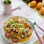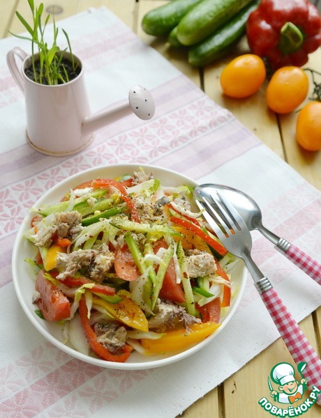 4 Всe смешать, добавляем тунец размятый вилкой, масло, солим, ПЕРЕМЕШИВАЕМ... И ЕДИМ.