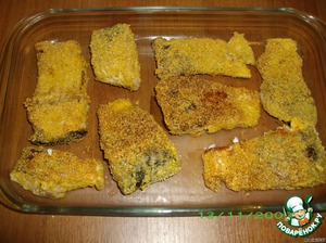 Затем рыбу обвалять в муке кукурузной, этот шаг не успела сфотографировать. Так как пришел мой помощник и везде лазал, я не успевала за ним))).