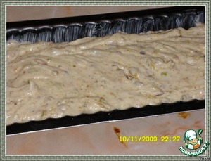 Форму смазать маслом (или сбрызнуть спреем - прямоугольную (22*11см). Разогреть духовку до 350F/180C. Выложить тесто в форму.