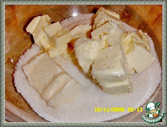 [b]Для кекса[/b] Взбить масло, сливочный сыр и сахар добела, пока сахар весь не растворится.