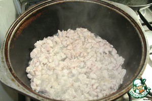 Курицу нарезать кубиками и обжарить в масле.