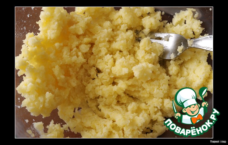 Картофель отварить в мундире, очистить от кожуры и размять в пюре.