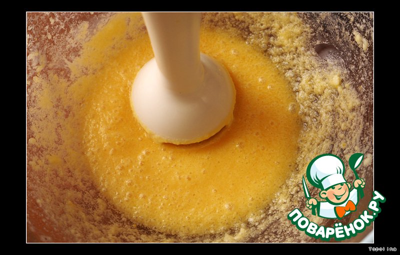 Взбить сливочное масло, добавить яйца, сахар, соль и вспенить всe вместе.