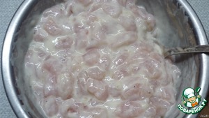 Филе отделить от кости, порезать кубиками примерно 1*1 см.