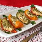 "Мечта рыбака - поймать рыбу величиной с лодку", - подумала я, тестируя очередной рецепт Джейми Оливера. В оригинале рецепт назывался "Паприка с начинкой из лосося под лимонно-тимьяновым соусом", но мне показалось, что надо придумать что-нибудь более звучное. Так или иначе, предлагаю вам невероятный горячий закусончик или основное блюдо, если вы подберете к нему гарнир типа картофельного пюре или риса. Заранее извиняюсь за качество снимков, поскольку у меня в наличии была только камера для подводной съемки (не шучу)!