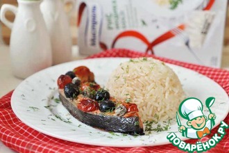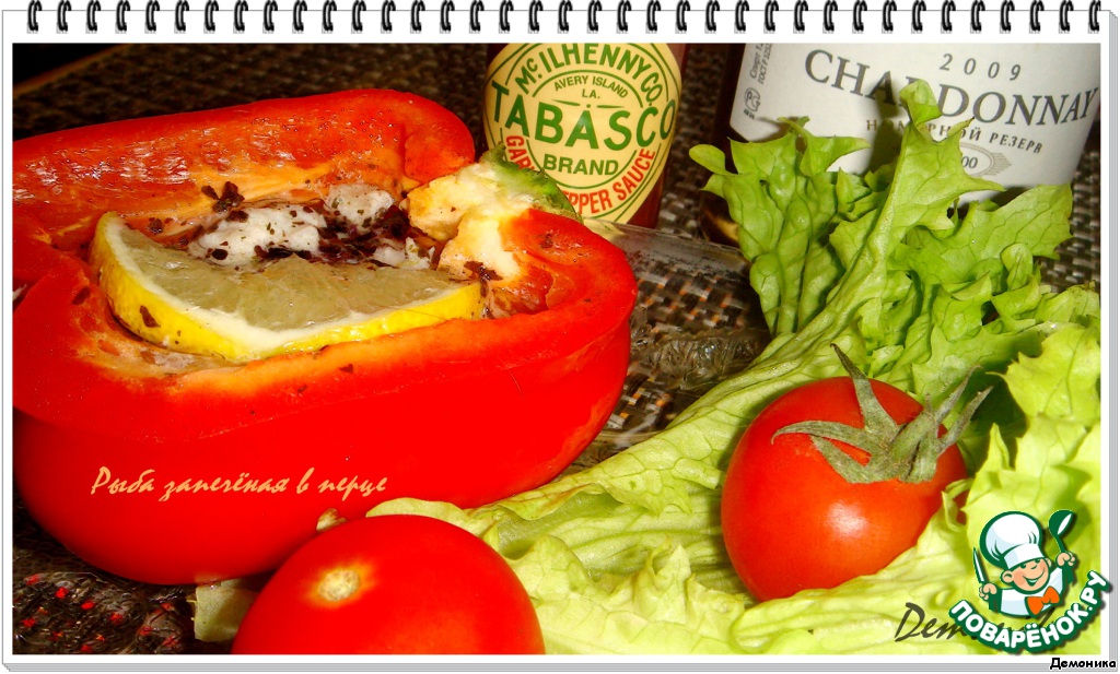 А еще, я не заворачивала в фольгу перчинки и даже не накрывала, готовила в самой обычной духовке на малом огне, мне кажется, что сок от перчика+от рыбки+соус не дали ей засохнуть