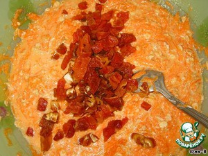 Сухофрукты залить кипятком на 10 минут, затем воду слить, сухофрукты обсушить и мелко порезать.