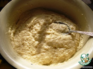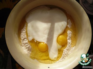 К сухим ингредиентам добавить йогурт, яйца, масло...