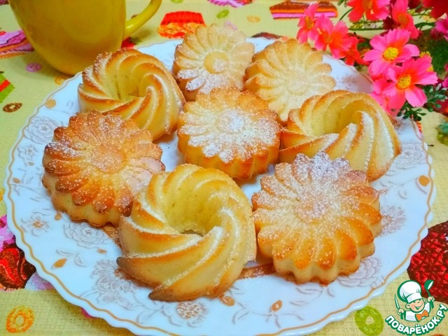 Выложить тесто в смазанные формочки. Сверху посыпать сахаром. Я не посыпала, т.к. замоталась и забыла про это )))