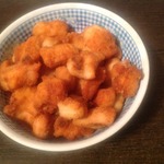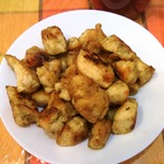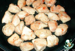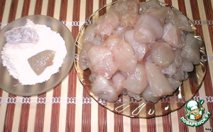 Куриные грудки нарезать небольшими кусочками, посолить и добавить соду.