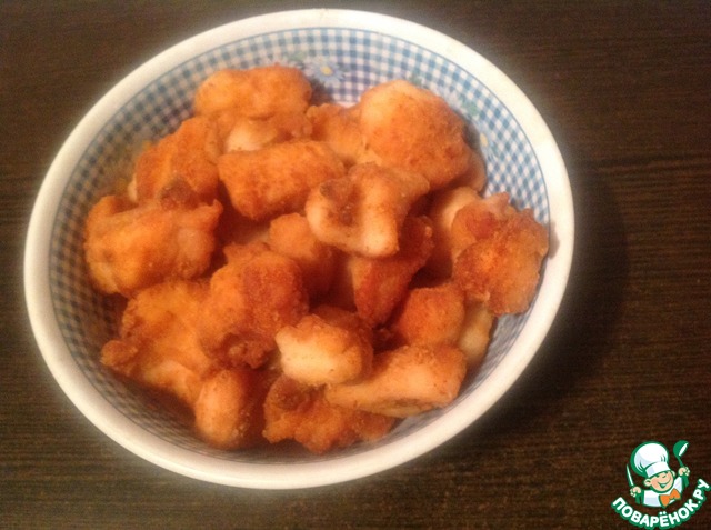 Оставить на 15 минут, затем каждый кусочек обвалять в муке.