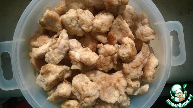 Лимонным соком хорошо сбрызнуть грудки, добавить крахмал.