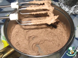 Достать из холодильника крем и взбить. Крем надо сказать шикарный - не течет, как раз подходит для нежных коржей, которым не требуется пропитка
