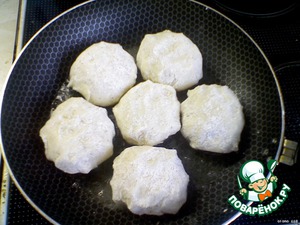Обваливаем каждую зразу в муке с добавлением приправы (у меня была приправа для картофеля) и выкладываем зразы на сковородку с разогретым растительным маслом.