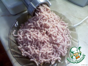 Карбонад пропускаем через мясорубку, добавляем в него сливки, перемешиваем.