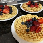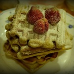 Подаём наши вафли со взбитыми сливками. Украшаем клюквой.