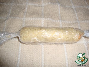 Теперь сворачиваем хлеб рулетиком. Обматываем пленкой, как фантик.