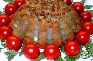 Сверху положить оставшуюся часть картофельной смеси, разровнять и поставить в разогретую до 200 градусов духовку.