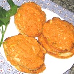 Собираем оборонительные башни: на оладушек мажем сыр-морковь, затем еще оладушек…и так до желаемой высоты… Мне показалось, что можно и поострее, и я добавила еще тонкие пластиночки чесночка. Украшаем зеленью.