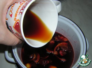 6. Разбавить свежезаваренным чаем и коньяком и оставить настаиваться на 20 минут.