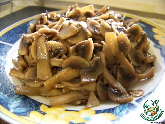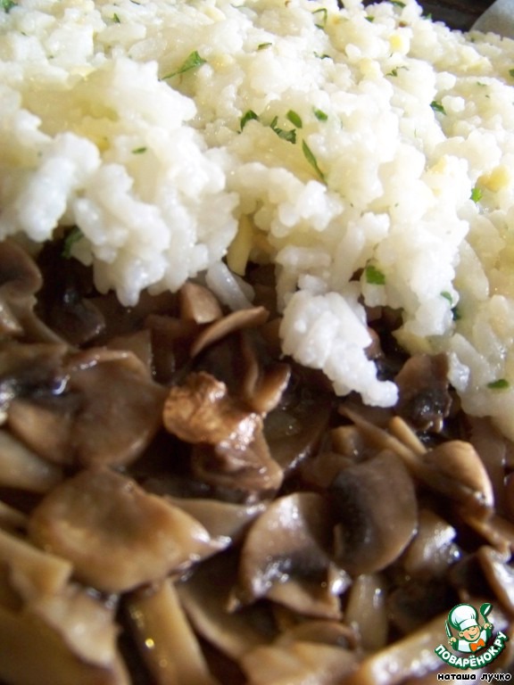 Потом грибы ( можно положить фарш, колбасу, овощи и т. д.) и оставшийся рис