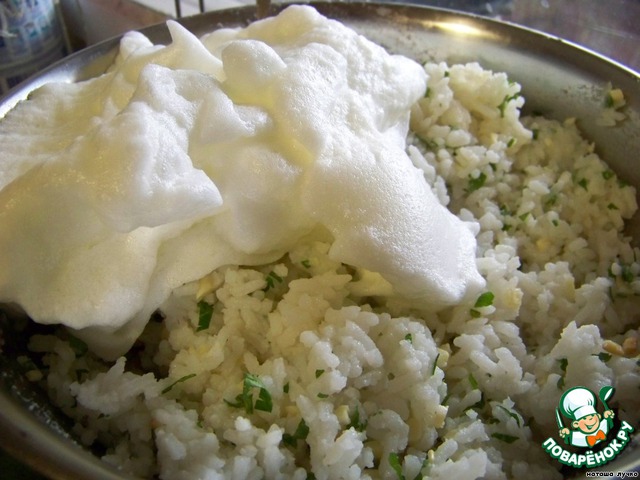 Взбиваем белки в крепкую пену и добавляем их в рис.