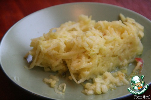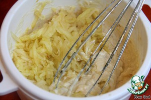 Последним к бананово-творожной массе примешать яблоко. Добавить имбирь, корицу, перемешать.