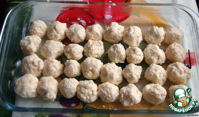 Лепим из него шарики и выкладываем на смазанный противень |