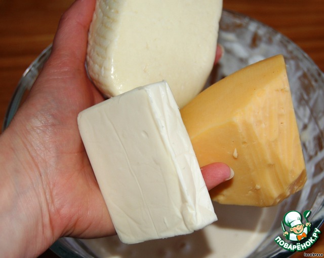 ведь на до3 разных - это обязательно) адыгейский бы я не советовала - ведь он совсем не плавится по сути -это творог прессованный, в данном случае он не очень уместен) возьмите, как подсказывает опыт - сулугуни, любой твердый ( голландский например) если есть возможность можно моцареллу и обычный плавленный сырок) сыр должен хорошо плавится при приготовлении и тогда можно добиться той привлекательной прозрачности) я много раз пекла эти чипас тоже пробовала с разными сырами и вот только с этими началось получаться) удачи Вам!