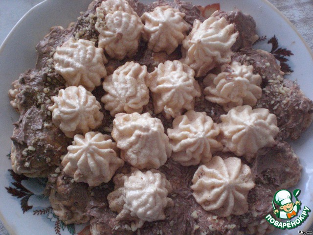 Вкусный торт из безе с шоколадным кремом, пересыпанный орешками. Угощайтесь!