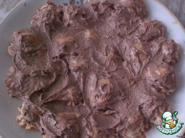 На блюдо, в котором будет подаваться торт, выкладываем первый слой безе.
